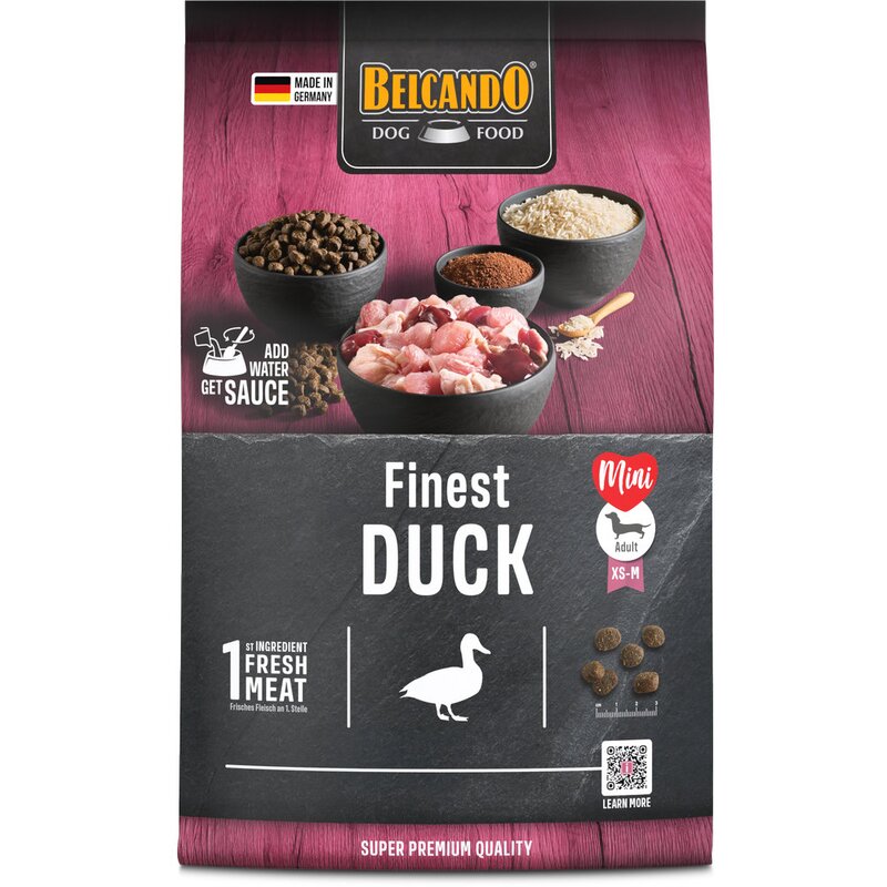 Als Besonderheit zur Förderung des Geschmacks wurde BELCANDO® FINEST CROC mit einer speziellen Sauce ausgestattet. Unter sorgfältigem Anrühren von 3 Teilen BELCANDO® FINEST CROC mit 1 Teil warmen Wasser (40-50 °C) bildet sich ein besonders schmackhafter Soßenüberzug über die Futterpartikel. Dieser ist für wählerische Hunde eine besondere Delikatesse. Aber auch bei trockener Fütterung zeichnet sich BELCANDO® FINEST CROC durch höchsten Geschmack aus.