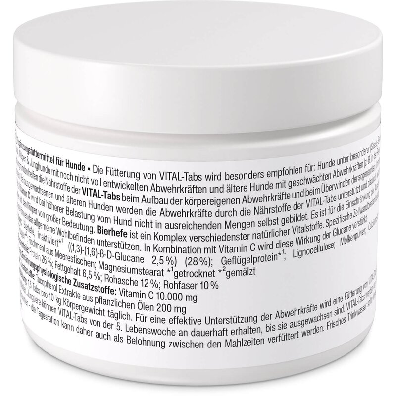 Vital Tabs ergänzen die Versorgung des Hundes gezielt mit Nährstoffen, die für ihre unterstützende Wirkung auf das allgemeine, körpereigene Immunsystem des Hundes bekannt sind: