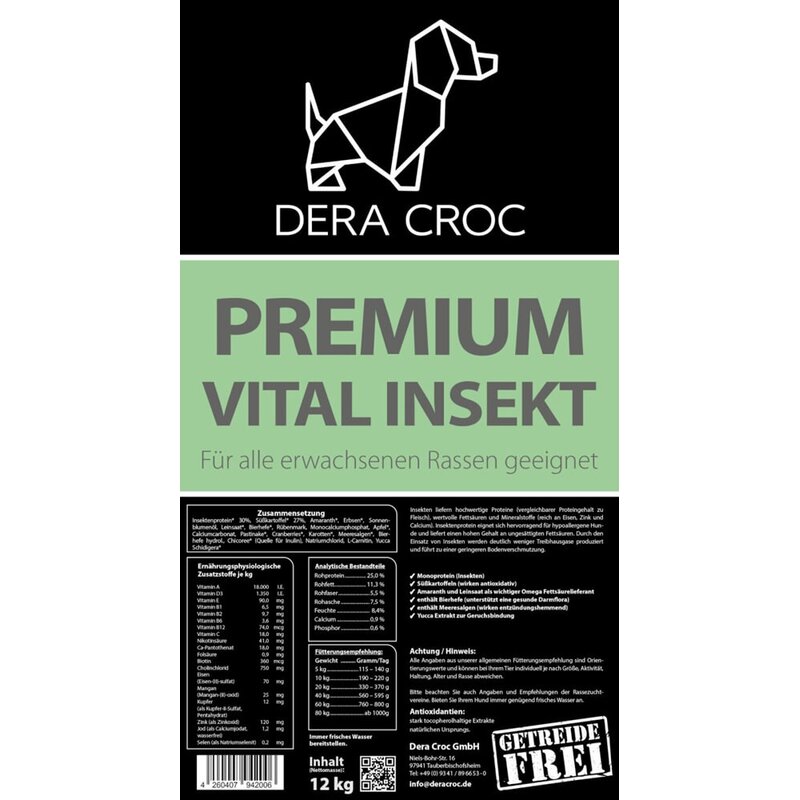 Insektenprotein 30%, Süßkartoffel 27%, Amaranth, Erbsen, Sonnenblumenöl, Leinsaat, Bierhefe, Rübenmark, Monocalciumphosphat, Apfel, Calciumcarbonat, Pastinake, Cranberries, Karotten, Meeresalgen, Bierhefe hydrol., Chicoree (Quelle für Inulin), Natriumchlorid, L-Carnitin, Yucca Schidigera