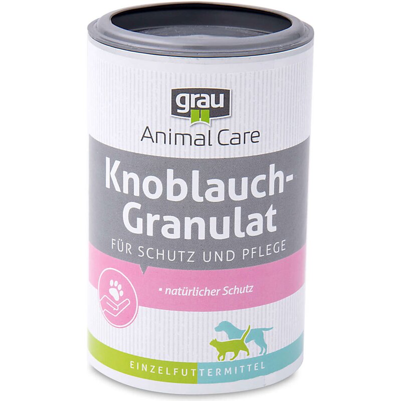In den grau-Produkten Knoblauch-Granulat und Knoblauch- Tabletten sind diese schwefelhaltigen Substanzen getrocknet vorhanden und spielen deshalb keine Rolle für das Tier.
