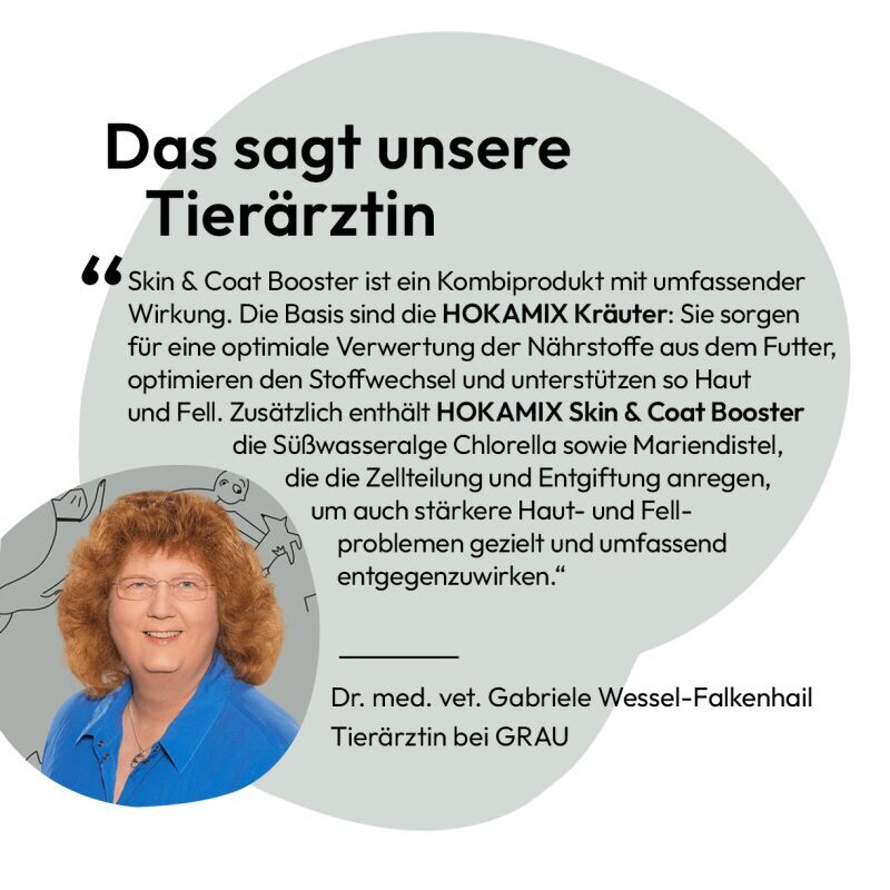 HOKAMIX 30 Derma spricht bestimmte ernährungsphysiologische Vorgänge im Körper eines Hundes an. Die enthaltenen sekundären Pflanzenstoffe dienen dazu, seine physiologischen Bedürfnisse zu sichern. Vor allem der Stoffwechsel wird gefördert, Haut und Fell werden optimal versorgt. Die in HOKAMIX 30 Derma enthaltenen Naturstoffe können also ein ernährungsbedingtes Ungleichgewicht ausgleichen.