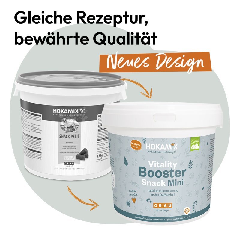 Für große Hunderassen gibt es den HOKAMIX30 Snack.