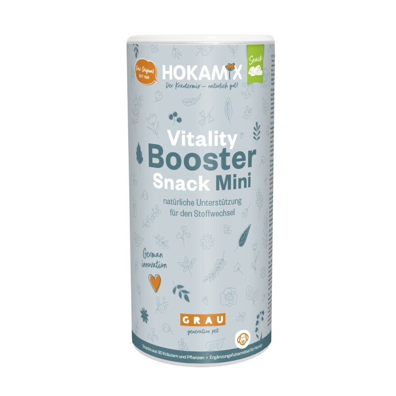 Die Snacks bestehen aus denselben Kräuter mit derselben Wirkung wie HOKAMIX30 Pulver. Die Snacks wurden für wählerische Hunde, die den besonders gesunden und \"natürlichen\" Geruch des HOKAMIX30 Pulvers nicht mögen, entwickelt. Sie sind, ebenso wie das HOKAMIX30 Pulver, ein reines Naturprodukt ohne chemische Zusätze und ohne künstliche Geschmacksstoffe. HOKAMIX30 Snacks werden in einem aufwändigen und besonders schonenden Verfahren unter Zumischung von Hühnerfleisch hergestellt. Sie werden von den meisten Hunden bestens akzeptiert und eignen sich auch als kleine Belohnung. Sie können einfach - auch bei Fütterung von Trockenfutter und auf Reisen - verabreicht werden.
