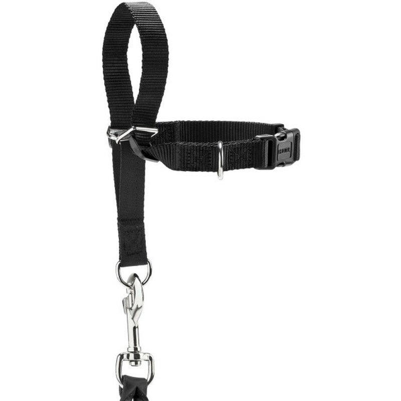 Das Hunter Ausbildungsgeschirr Follow Me ist ein leicht zu handhabendes Geschirr, das durch seine vielfältigen Funktionen die Ausbildung und Erziehung Ihres Hundes erheblich vereinfacht. Die einzelnen Funktionen wurden Abläufen aus dem Tierreich nachempfunden; mit Hilfe des Geschirrs wird jeder Hund durch leichten Zug an Nasenrücken und Nacken sanft erzogen, ohne ihn in seinen natürlichen Bewegungsabläufen zu behindern. Durch eigens entworfene Metallringe kann der Nasenriemen nicht mehr von der Nase rutschen. Zusätzlich kann das Geschirr in eine Halsung umgewandelt werden. Dazu wird der Hals- und Nasenriemen ein wenig verlängert und nach Öffnung der Steckverschlüsse die Nasenschlaufe über den Kopf des Hundes gezogen. Die Steckverschlüsse werden um den Hals herumgeführt und zusammengesteckt.
