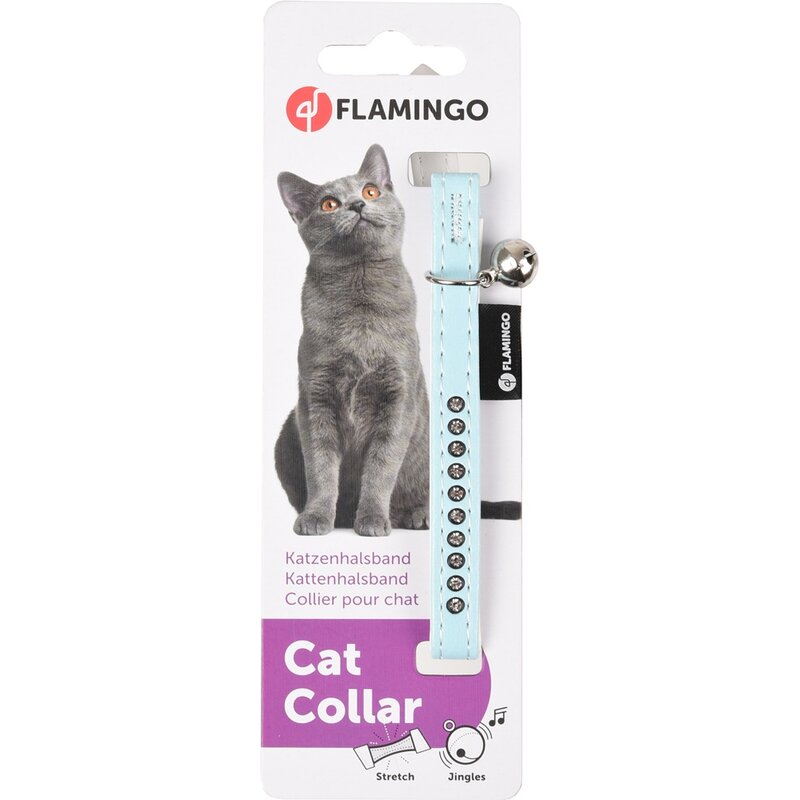 gepolstertes Katzenhalsband Monte Carlo mit Strass - hellblau